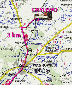 60 m. od wschodniej strony dworu, znajduje się długie na 6 km. Jezioro Grylewskie